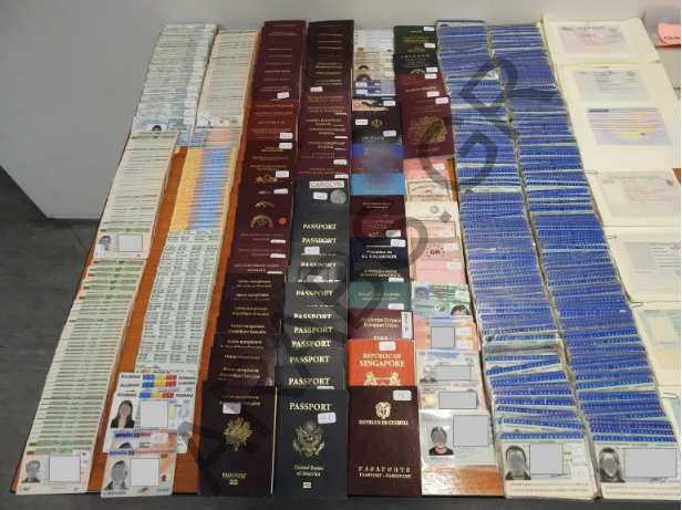 وتم العثور على 130 جواز سفر مزيف من بلدان مختلفة و 809 بطاقات هوية ، ووثائق تصريح الإقامة، ورخص قيادة، وتم العثور على وثائق تحويل الأموال بالإضافه الى ذالك العثور على مبلغ من المال، 30000 يورو، نقدا .