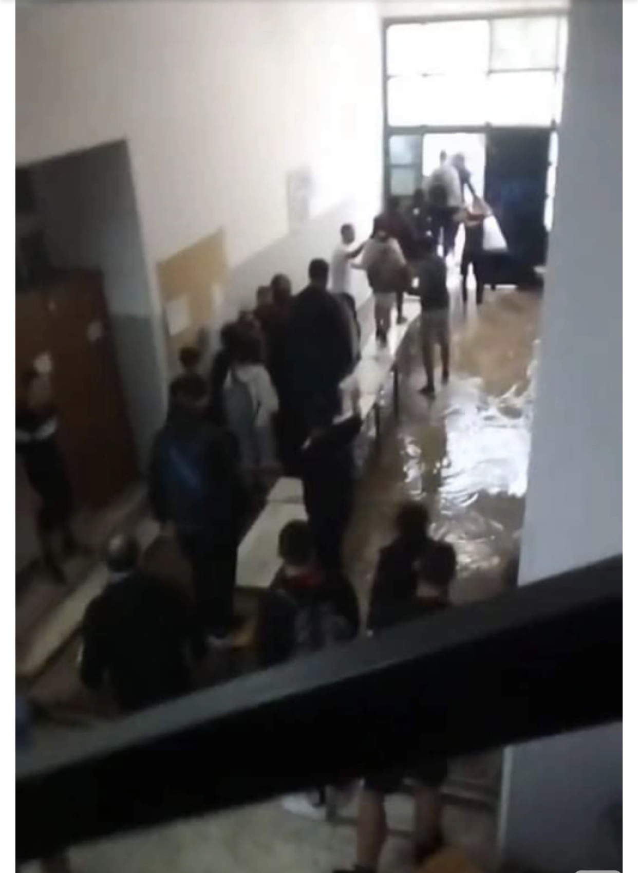 وصف معلم، الحالة التي يعاشها المعلمون والطلاب، حتى يتمكن الجميع من مغادرة المدرسة بأمان، خاصة وأن المياه غمرت فناء المدرسة كليًا.