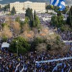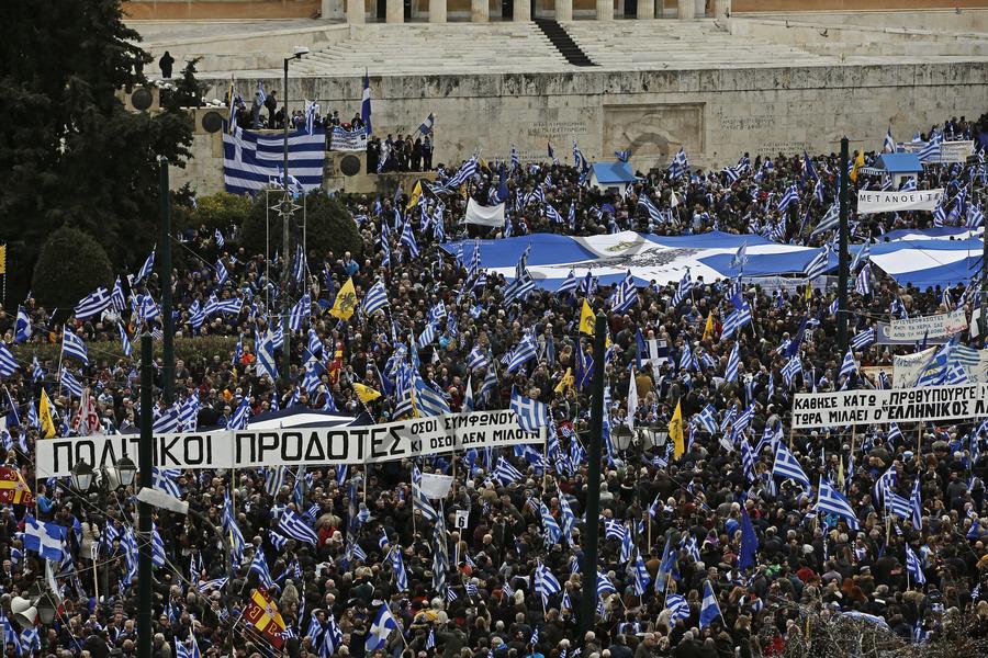 ووفقا للشرطة اليونانية تظاهر نحو 60 آلاف من اليونانيين في العاصمة أثينا اليوم الأحد احتجاجا على اتفاق يسوي خلافا بشأن اسم مقدونيا موضحه انه وقعت اشتباكات مع بعض المحتجين وأطلقت قوات مكافحة الشغب الغاز المسيل للدموع ، وأشارت إلي أنه أصيب 10 من رجال الشرطة بجروح.