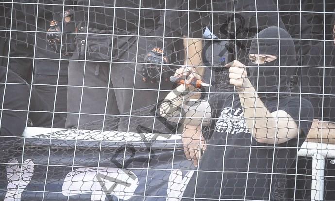 كما وضع المشجعون حواجز من صناديق القمامة وأشياء أخرى أضرموا فيها النيران.