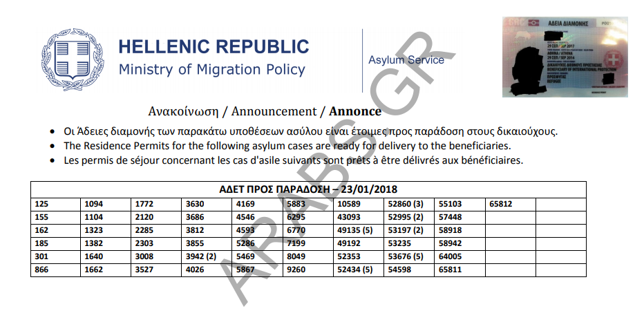 Home / اليونان / إعلان / تصاريح الإقامة الخاصة بحالات اللجوء جاهزة للتسليم بتاريخ 2018/01/23أخبار اللاجئيناليونانإعلان / تصاريح الإقامة الخاصة بحالات اللجوء جاهزة للتسليم بتاريخ 2018/01/23January 24, 2018 إعلان / تصاريح الإقامة الخاصة بحالات اللجوء جاهزة للتسليم بتاريخ 2018/01/23. Arabs.gr Leave a comment Share this ArticlePrevious Articleاليونان:انخفاض تدفقات اللاجئين بسبب سوء الاحوال الجويةNext Articleاليونان: إعلان / الباسبورات الجاهزة للاستلام الخاصة بحالات اللجوء جاهزة للتسليم بتاريخ 2018/01/23Omar Related Posts زيادة في تدفقات الهجرة في جزيرة كريت: ٣٦٩ وافداً خلال يومين April 14, 2026 إنقاذ ٥٧ مهاجراً غير شرعي جنوب جزيرة كريت و اعتقال مهربين اثنين م ... April 13, 2026 تفكيك شبكة تهريب مهاجرين في ساموس و اعتقال خمسة أشخاص April 5, 2026