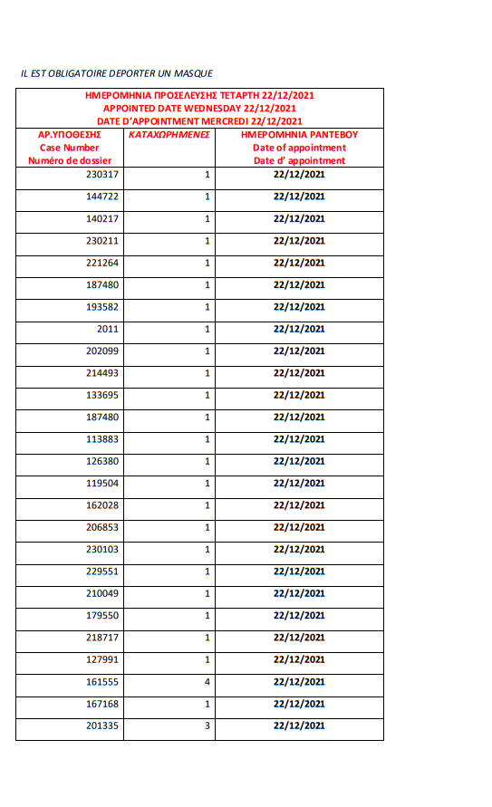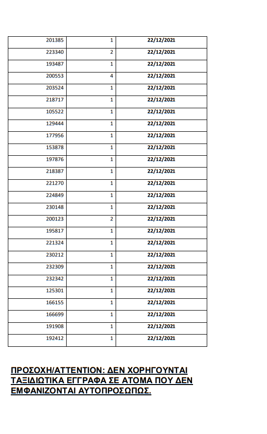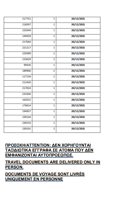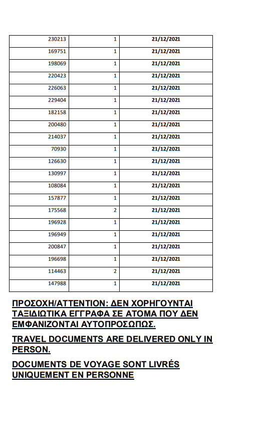 اليونان.. أرقام الباسبورات الجاهزة الخاصة بحالات اللجوء بتاريخ 16 ديسمبر 2021 (كاتيخاكي)