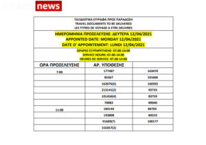 Home / اليونان / اليونان.. الباسبورات الجاهزة الخاصة بحالات اللجوء بتاريخ 9 أبريل 2021أخبار اللاجئيناليوناناليونان.. الباسبورات الجاهزة الخاصة بحالات اللجوء بتاريخ 9 أبريل 2021April 9, 2021 أصدرت دائرة اللجوء اليونانية اليوم الجمعة 9 أبريل 2021 أرقام الباسبورات الجاهزة الخاصة بحالات اللجوء، وسيتم تسليم الباسبورات يوم 12 أبريل. Arabs.gr Leave a comment Share this ArticlePrevious Articleوفاة الأمير فيليب زوج الملكة إليزابيثNext Articleمقتل صحفي يوناني خارج منزله في أليموسOmar Related Posts زيادة في تدفقات الهجرة في جزيرة كريت: ٣٦٩ وافداً خلال يومين April 14, 2026 إنقاذ ٥٧ مهاجراً غير شرعي جنوب جزيرة كريت و اعتقال مهربين اثنين م ... April 13, 2026 تفكيك شبكة تهريب مهاجرين في ساموس و اعتقال خمسة أشخاص April 5, 2026