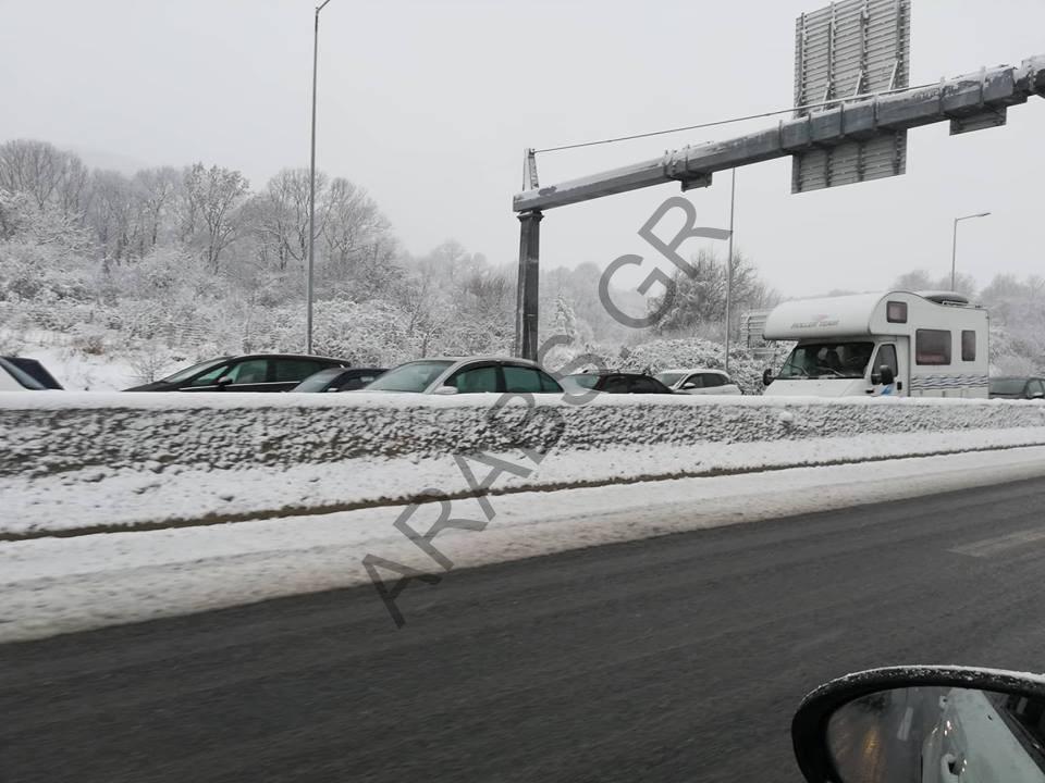 وتسببت الثلوج الكثيفة فى إغلاق طريق إغناتيا أودوس بإتجاة فيريا.