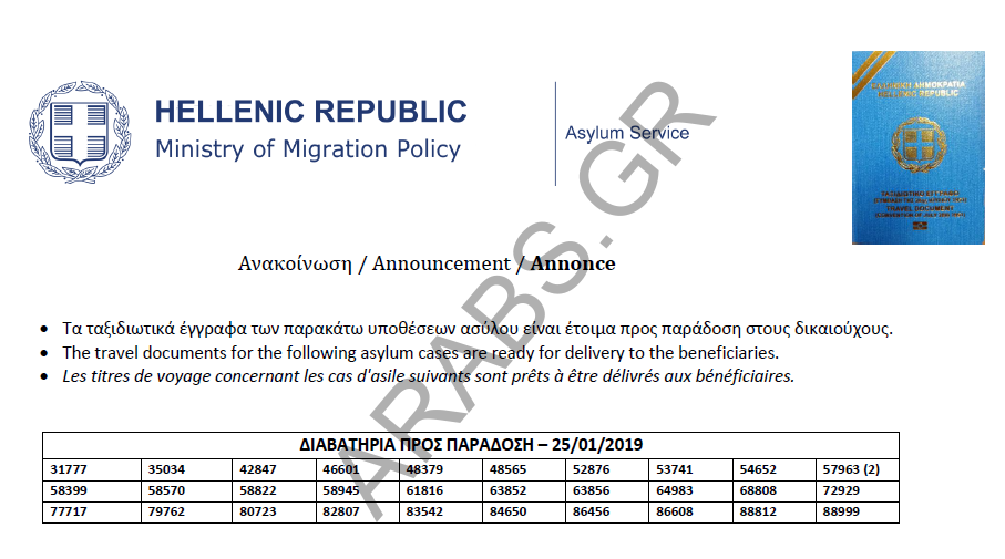 Home / هجرة / اليونان : أرقام الباسبورات الجاهزة الخاصة بحالات اللجوء بتاريخ 2019/01/25.هجرةاليونان : أرقام الباسبورات الجاهزة الخاصة بحالات اللجوء بتاريخ 2019/01/25.January 25, 2019 أرقام الباسبورات الجاهزة الخاصة بحالات اللجوء بتاريخ 2019/01/25. Arabs.gr Leave a comment Share this ArticlePrevious Articleأثينا : محل amana للملابس والأحذية والمنتجات الجلدية (جملة + مفرق )Next Articleاليونان : أرقام الموافقات على الباسبورات الخاصة بحالات اللجوء بتاريخ 2019/01/25.Omar Related Posts هيراكليون: يوجد في الميناء الـ ٧٩ مهاجرًا الذين تم العثور عليهم December 3, 2023 فرنسا.. السوري منفذ هجوم الطعن عبر أوروبا من خلال اليونان June 9, 2023 هام جداً/ مهاجرون استغلوا ثغرة في الموقع الإلكتروني لوزارة الهجرة ... April 5, 2023 Leave a ReplyYour email address will not be published. Required fields are marked *CommentName Email Website