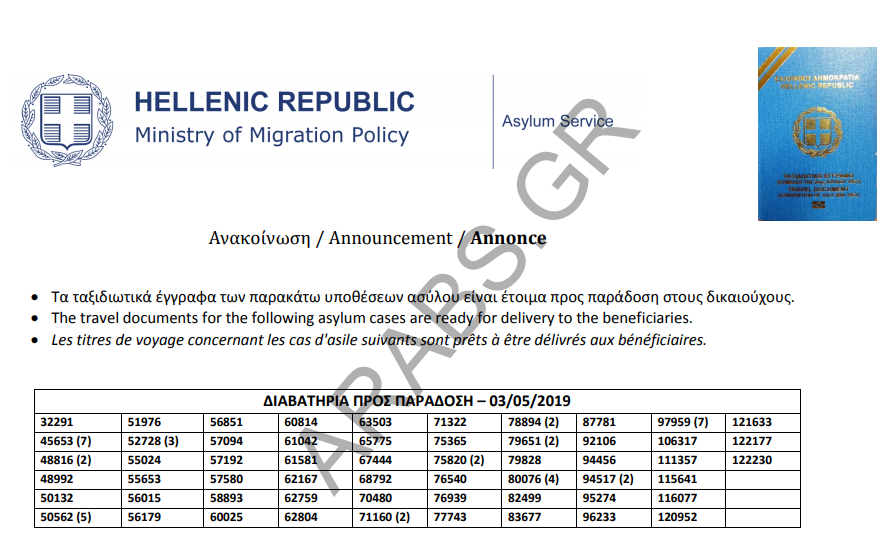 Home / هجرة / اليونان : أرقام الباسبورات الجاهزة الخاصة بحالات اللجوء بتاريخ 2019/05/03أخبار اللاجئيناليونانهجرةاليونان : أرقام الباسبورات الجاهزة الخاصة بحالات اللجوء بتاريخ 2019/05/03May 3, 2019 أرقام الباسبورات الجاهزة الخاصة بحالات اللجوء بتاريخ 2019/05/03. Arabs.gr Leave a comment Share this ArticlePrevious Articleاليونان: عطلة رسمية للمدارس بسبب الانتخاباتNext Articleاليونان : تصاريح الإقامة الجاهزة الخاصة بحالات اللجوء بتاريخ 2019/05/03.Omar Related Posts زيادة في تدفقات الهجرة في جزيرة كريت: ٣٦٩ وافداً خلال يومين April 14, 2026 إنقاذ ٥٧ مهاجراً غير شرعي جنوب جزيرة كريت و اعتقال مهربين اثنين م ... April 13, 2026 تفكيك شبكة تهريب مهاجرين في ساموس و اعتقال خمسة أشخاص April 5, 2026 Leave a ReplyYour email address will not be published. Required fields are marked *CommentName Email Website