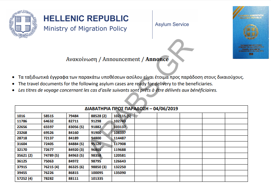 Home / هجرة / اليونان : أرقام الباسبورات الجاهزة الخاصة بحالات اللجوء بتاريخ 2019/06/04أخبار اللاجئيناليونانهجرةاليونان : أرقام الباسبورات الجاهزة الخاصة بحالات اللجوء بتاريخ 2019/06/04June 4, 2019 أرقام الباسبورات الجاهزة الخاصة بحالات اللجوء بتاريخ 2019/06/04. Arabs.gr Leave a comment Share this ArticlePrevious Article……. بـرقيــة تهنئــة بمناسبة حلـول عيــد الفطــر المـــبارك……Next Articleاليونان : تصاريح الإقامة الجاهزة الخاصة بحالات اللجوء بتاريخ 2019/06/04Omar Related Posts زيادة في تدفقات الهجرة في جزيرة كريت: ٣٦٩ وافداً خلال يومين April 14, 2026 إنقاذ ٥٧ مهاجراً غير شرعي جنوب جزيرة كريت و اعتقال مهربين اثنين م ... April 13, 2026 تفكيك شبكة تهريب مهاجرين في ساموس و اعتقال خمسة أشخاص April 5, 2026 Leave a ReplyYour email address will not be published. Required fields are marked *CommentName Email Website