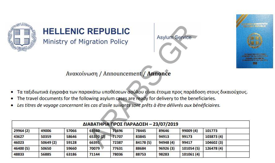 Home / هجرة / اليونان : أرقام الباسبورات الجاهزة الخاصة بحالات اللجوء بتاريخ 2019/07/23أخبار اللاجئيناليونانهجرةاليونان : أرقام الباسبورات الجاهزة الخاصة بحالات اللجوء بتاريخ 2019/07/23July 23, 2019 أرقام الباسبورات الجاهزة الخاصة بحالات اللجوء بتاريخ 2019/07/23. Arabs.gr Leave a comment Share this ArticleTagged:أرقام الباسبورات الجاهزةالباسبورات وتصاريحPrevious Articleاليونان : تصاريح الإقامة الجاهزة الخاصة بحالات اللجوء بتاريخ 2019/07/23Next Articleإنقاذ 8 مهاجرين غرق قاربهم جنوب غربي تركياOmar Related Posts زيادة في تدفقات الهجرة في جزيرة كريت: ٣٦٩ وافداً خلال يومين April 14, 2026 إنقاذ ٥٧ مهاجراً غير شرعي جنوب جزيرة كريت و اعتقال مهربين اثنين م ... April 13, 2026 تفكيك شبكة تهريب مهاجرين في ساموس و اعتقال خمسة أشخاص April 5, 2026 Leave a ReplyYour email address will not be published. Required fields are marked *CommentName Email Website