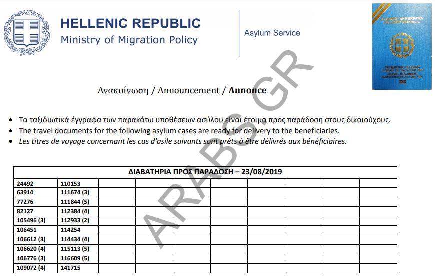 Home / هجرة / اليونان : أرقام الباسبورات الجاهزة الخاصة بحالات اللجوء بتاريخ 2019/08/23أخبار اللاجئيناليونانهجرةاليونان : أرقام الباسبورات الجاهزة الخاصة بحالات اللجوء بتاريخ 2019/08/23August 23, 2019 أرقام الباسبورات الجاهزة الخاصة بحالات اللجوء بتاريخ 2019/08/23. Arabs.gr Leave a comment Share this ArticleTagged:أرقام الباسبورات الجاهزةPrevious Articleاليونان : تصاريح الإقامة الجاهزة الخاصة بحالات اللجوء بتاريخ 2019/08/23Next Articleاليونان : أرقام الموافقات على الباسبورات الخاصة بحالات اللجوء بتاريخ 2019/08/23.Omar Related Posts زيادة في تدفقات الهجرة في جزيرة كريت: ٣٦٩ وافداً خلال يومين April 14, 2026 إنقاذ ٥٧ مهاجراً غير شرعي جنوب جزيرة كريت و اعتقال مهربين اثنين م ... April 13, 2026 تفكيك شبكة تهريب مهاجرين في ساموس و اعتقال خمسة أشخاص April 5, 2026 Leave a ReplyYour email address will not be published. Required fields are marked *CommentName Email Website