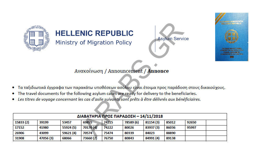 Home / هجرة / اليونان : أرقام الباسبورات الجاهزة الخاصة بحالات اللجوء بتاريخ 2018/11/14أخبار اللاجئينهجرةاليونان : أرقام الباسبورات الجاهزة الخاصة بحالات اللجوء بتاريخ 2018/11/14November 15, 2018 أرقام الباسبورات الجاهزة الخاصة بحالات اللجوء بتاريخ 2018/11/14. Arabs.gr Leave a comment Share this ArticlePrevious Articleضبط 51 مهاجرا غير نظامي قبالة “موغلا” التركيةNext Articleإصابة 18 شخصا إثر تحطم شاحنة تقل مهاجرين بشمال شرق اليونانOmar Related Posts زيادة في تدفقات الهجرة في جزيرة كريت: ٣٦٩ وافداً خلال يومين April 14, 2026 إنقاذ ٥٧ مهاجراً غير شرعي جنوب جزيرة كريت و اعتقال مهربين اثنين م ... April 13, 2026 تفكيك شبكة تهريب مهاجرين في ساموس و اعتقال خمسة أشخاص April 5, 2026 Leave a ReplyYour email address will not be published. Required fields are marked *CommentName Email Website