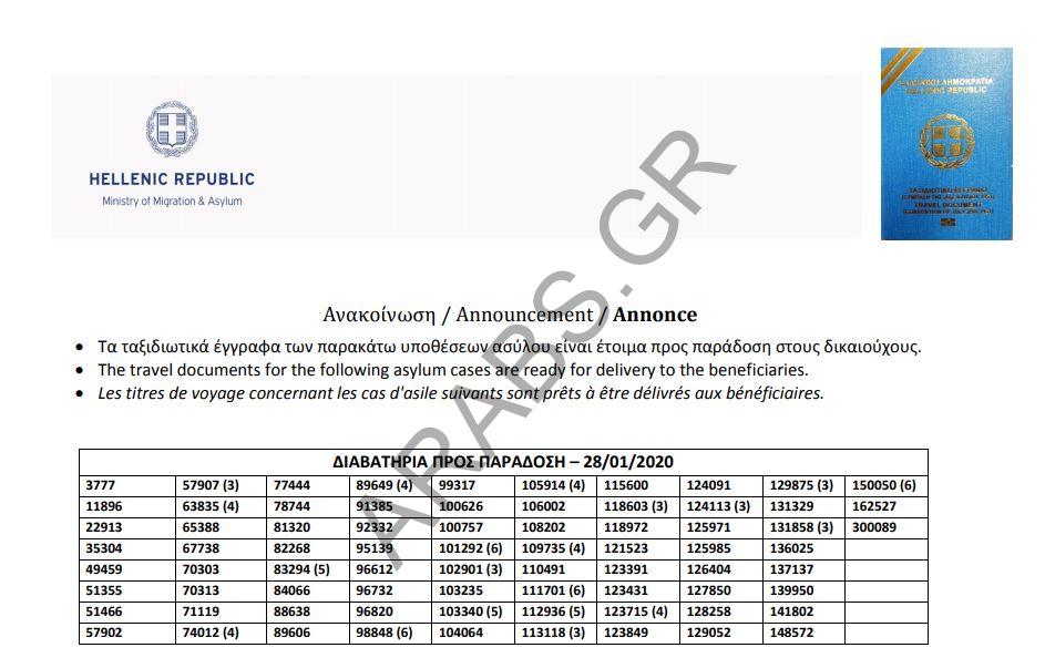 Home / هجرة / اليونان: أرقام الباسبورات الجاهزة الخاصة بحالات اللجوء بتاريخ 28/ 01/ 2020أخبار اللاجئيناللجوء في اليوناناليونانهجرةاليونان: أرقام الباسبورات الجاهزة الخاصة بحالات اللجوء بتاريخ 28/ 01/ 2020January 28, 2020 أرقام الباسبورات الجاهزة الخاصة بحالات اللجوء بتاريخ 28/ 01/ 2020. أرقام الباسبورات الجاهزة . Arabs.gr Leave a comment Share this ArticlePrevious Articleمليون يورو.. غرامة تعطيل حركة المرور على الطرق الوطنية في اليونانNext Articleمكتب دعم اللجوء الأوروبي يوقع اتفاقاً لتسريع إجراءات اللجوء في اليونانOmar Related Posts زيادة في تدفقات الهجرة في جزيرة كريت: ٣٦٩ وافداً خلال يومين April 14, 2026 إنقاذ ٥٧ مهاجراً غير شرعي جنوب جزيرة كريت و اعتقال مهربين اثنين م ... April 13, 2026 تفكيك شبكة تهريب مهاجرين في ساموس و اعتقال خمسة أشخاص April 5, 2026 Leave a ReplyYour email address will not be published. Required fields are marked *CommentName Email Website