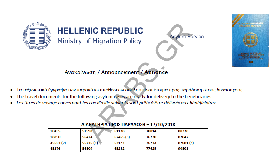 Home / اليونان / اليونان : أرقام الباسبورات وتصاريح الإقامات الجاهزة الخاصة بحالات اللجوء بتاريخ 2018/10/17.أخبار اللاجئيناليوناناليونان : أرقام الباسبورات وتصاريح الإقامات الجاهزة الخاصة بحالات اللجوء بتاريخ 2018/10/17.October 17, 2018 أرقام الباسبورات الجاهزة الخاصة بحالات اللجوء بتاريخ 2018/10/17. أرقام تصاريح الإقامة الجاهزة الخاصة بحالات اللجوء بتاريخ 2018/10/17. Arabs.gr Leave a comment Share this ArticlePrevious Articleموجز الأخبار الخاص باللاجئين والمهاجرين فى اليونان 2018/10/16Next Articleاستقالة وزير خارجية اليونان نيكوس كوتزياسOmar Related Posts زيادة في تدفقات الهجرة في جزيرة كريت: ٣٦٩ وافداً خلال يومين April 14, 2026 إنقاذ ٥٧ مهاجراً غير شرعي جنوب جزيرة كريت و اعتقال مهربين اثنين م ... April 13, 2026 تفكيك شبكة تهريب مهاجرين في ساموس و اعتقال خمسة أشخاص April 5, 2026 Leave a ReplyYour email address will not be published. Required fields are marked *CommentName Email Website