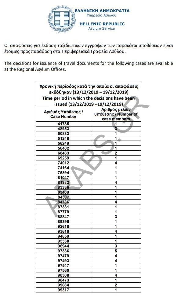 Home / هجرة / اليونان: أرقام الموافقات على الباسبورات الخاصة بحالات اللجوء بتاريخ 2019/12/20أخبار اللاجئيناللجوء في اليوناناليونانهجرةاليونان: أرقام الموافقات على الباسبورات الخاصة بحالات اللجوء بتاريخ 2019/12/20December 20, 2019 أرقام الموافقات على الباسبورات الخاصة بحالات اللجوء بتاريخ 2019/12/20. أرقام الموافقات على الباسبورات الخاصة بحالات اللجوء بتاريخ 2019/12/20. Arabs.gr Leave a comment Share this ArticleTagged:أرقام الموافقات على الباسبوراتPrevious Articleاستطلاع: المراهقون في اليونان يفضلون تكافؤ الفرص للمهاجرينNext Articleاليونان: المهاجرون منذ أكثر من 15 عاماً يعانون من عدم الحصول على تصريح إقامة طويل الأمدOmar Related Posts زيادة في تدفقات الهجرة في جزيرة كريت: ٣٦٩ وافداً خلال يومين April 14, 2026 إنقاذ ٥٧ مهاجراً غير شرعي جنوب جزيرة كريت و اعتقال مهربين اثنين م ... April 13, 2026 تفكيك شبكة تهريب مهاجرين في ساموس و اعتقال خمسة أشخاص April 5, 2026 Leave a ReplyYour email address will not be published. Required fields are marked *CommentName Email Website
