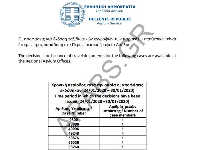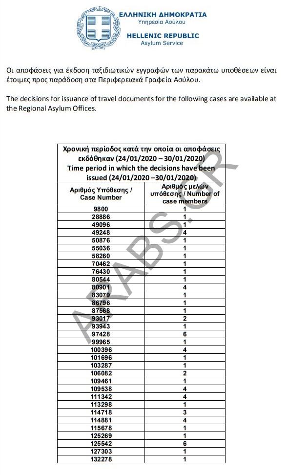 أرقام الموافقات على الباسبورات الخاصة بحالات اللجوء بتاريخ 2020/01/31.
