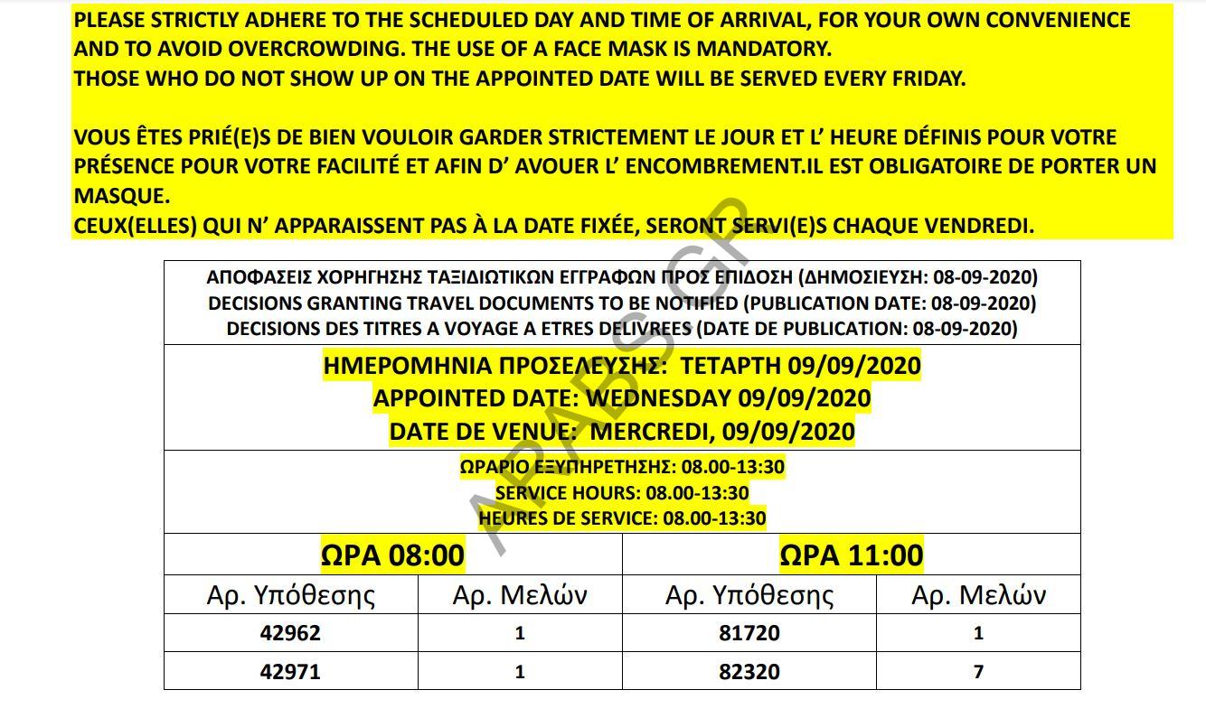 أصدرت دائرة اللجوء اليونانية اليوم الثلاثاء 08 سبتمبر 2020 أرقام الموافقات على الباسبورات الخاصة بحالات اللجوء.