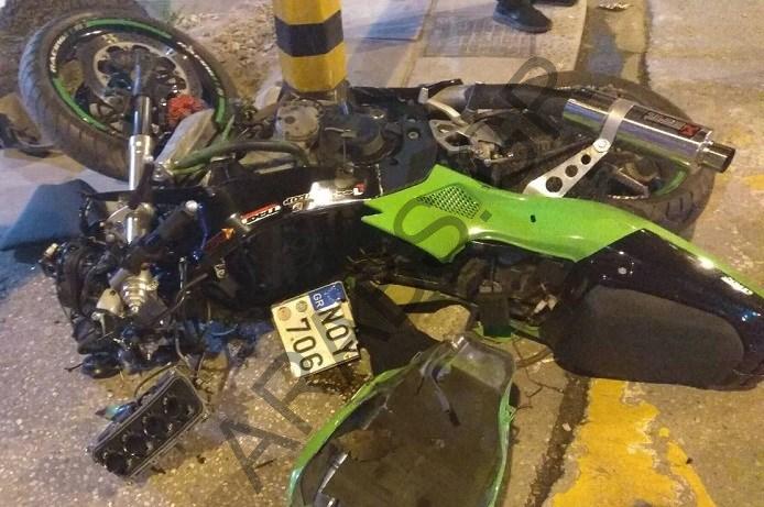 وقع حادث مرور في الساعة 21:00 مساء يوم الأحد في وسط سالونيك اصطدمت دراجة نارية عند تقاطع شارعي إغناتيا ودوديكانيس.