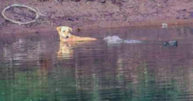 ثلاثة تماسيح تنقذ كلباً في الهند