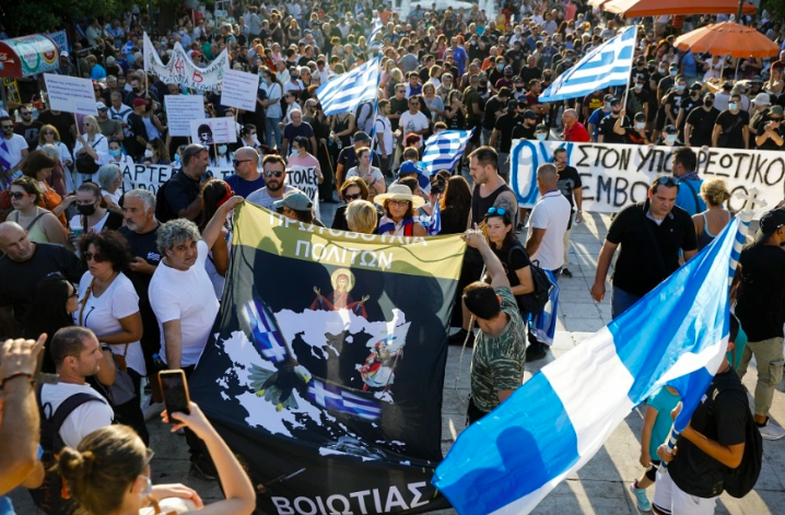 ونظم عدد من المناهضين للتطعيم الإجباري تجمعاً حاشداً في ميدان سينتاغما، وفي البرج الأبيض في ثيسالونيكي، للتعبير عن رفضهم الحصول على لقاح فيروس كورونا والإجراءات الحكومية والتطعيم الإجباري.