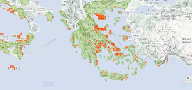 وهذه خريطة تفاعلية توضح أماكن ظهور قنديل البحر الأرجواني في اليونان.