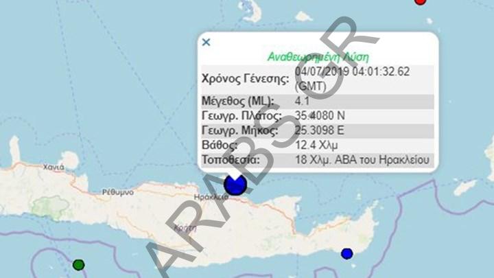 وذكر المعهد أن مركز الزلزال يقع على بعد 18 كم شمال شرق مدينة إيراكليون أكبر مدن الجزيرة ، على عمق 12.4 كم.