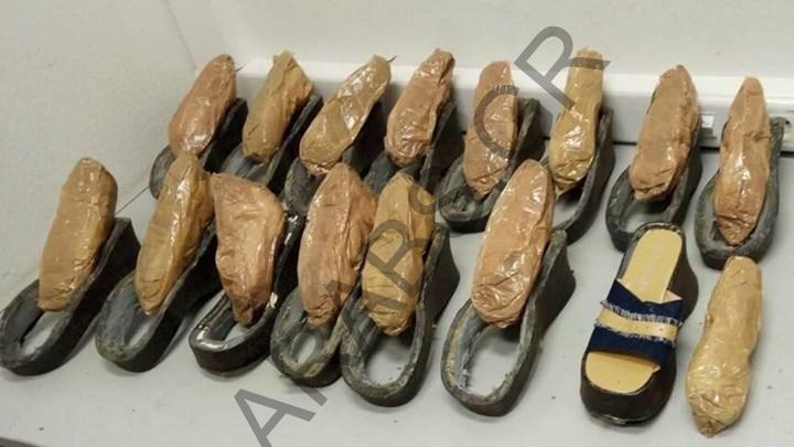 وصلت المرأة إلى اليونان من جنوب أفريقيا. عبر أبو ظبي ومعها 6 كيلوغرامات و 92 غراما،من الهيروين خلال خمسة عشر 15 حذاء، والتي كانت مخبأة بعناية في الأحذية.