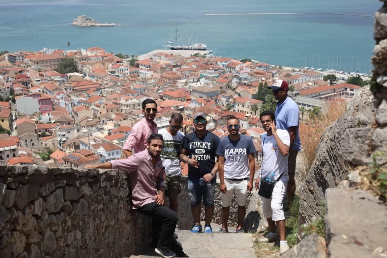 بدأنا الرحلة مع بعض التأخير بسبب “بعض الساهيرة” (ونحن نعرف من هم ?) الذين لم يستطيعوا أن يستيقظوا في الصباح .. قمنا بإستراحة في منطقة – قناة كورينثوس وبعد ساعتين تقريبا وصلنا الي مدينة نافبليو الجميلة. بعض المغامرين الشجعان قرروا تسلق 999 درجة للوصول إلى قلعة البالاميذي سيرا على الأقدام (بالطبع ، لم يكن هناك شجاع واحد للنزول بنفس الطريقة? ). والبعض منا تمشي في مدينة القديمة وتزوق المنتجات الشهيرة (الآيس كريم ).