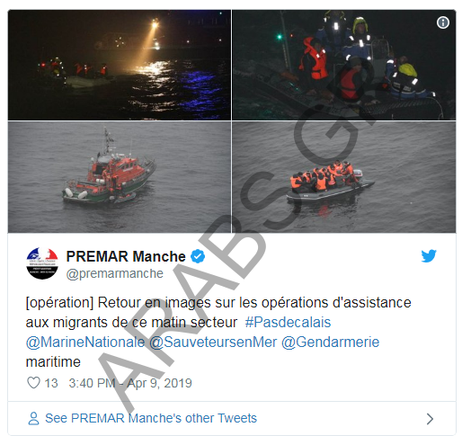 عند حوالي الساعة الخامسة صباحا وعلى بعد 13 كيلومترا من سواحل كاليه شمال فرنسا، طلب 9 مهاجرين على متن قارب صغير النجدة بعد أن كانوا على وشك الغرق. ووفقا لبيان السلطات البحرية للقناة، تم إنقاذ المهاجرين وإعادتهما إلى كاليه.