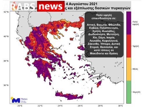 هيئة الأرصاد الجوية اليونانية تحذر من طقس اليوم وتؤكد وجود احتمالات عالية لوقوع حرائق