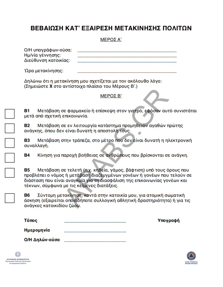 قامت الحكومة اليونانية بتخصيص الرقم المجاني 13033 للاستئذان بالخروج من المنزل خلال فترة حظر التجول التي فرضتها الحكومة لمنع انتشار فيروس كورونا، وفي إطار الضوابط التي حددتها الحكومة في قراراتها السابقة.