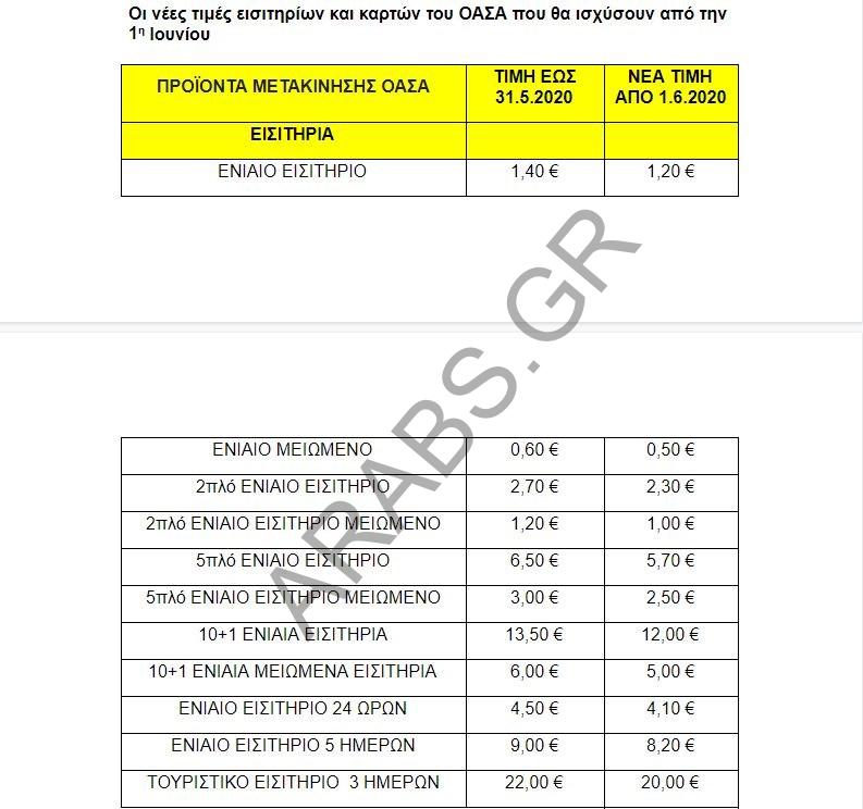 سيتم تخفيض أسعار تذاكر النقل العام في أثينا وثيسالونيكي اعتباراً من يوم الإثنين الموافق 1 يونيو 2020 ، عندما يتم تخفيض ضريبة القيمة المضافة إلى 13 في المئة بدلاً من 26 في المئة.