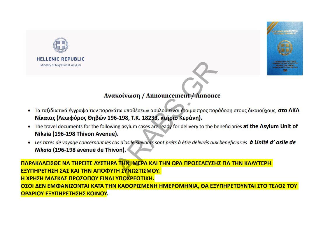 أصدرت دائرة اللجوء اليونانية اليوم الجمعة 12 يونيو 2020، أرقام جوازات السفر الجاهزة للتسليم، وسيتم تسليم الجوازات يوم الثلاثاء 16 يونيو، حيث سيتم تسليم كل جواز سفر بحسب الساعة الموضحة في المرفق المنشور داخل الخبر.