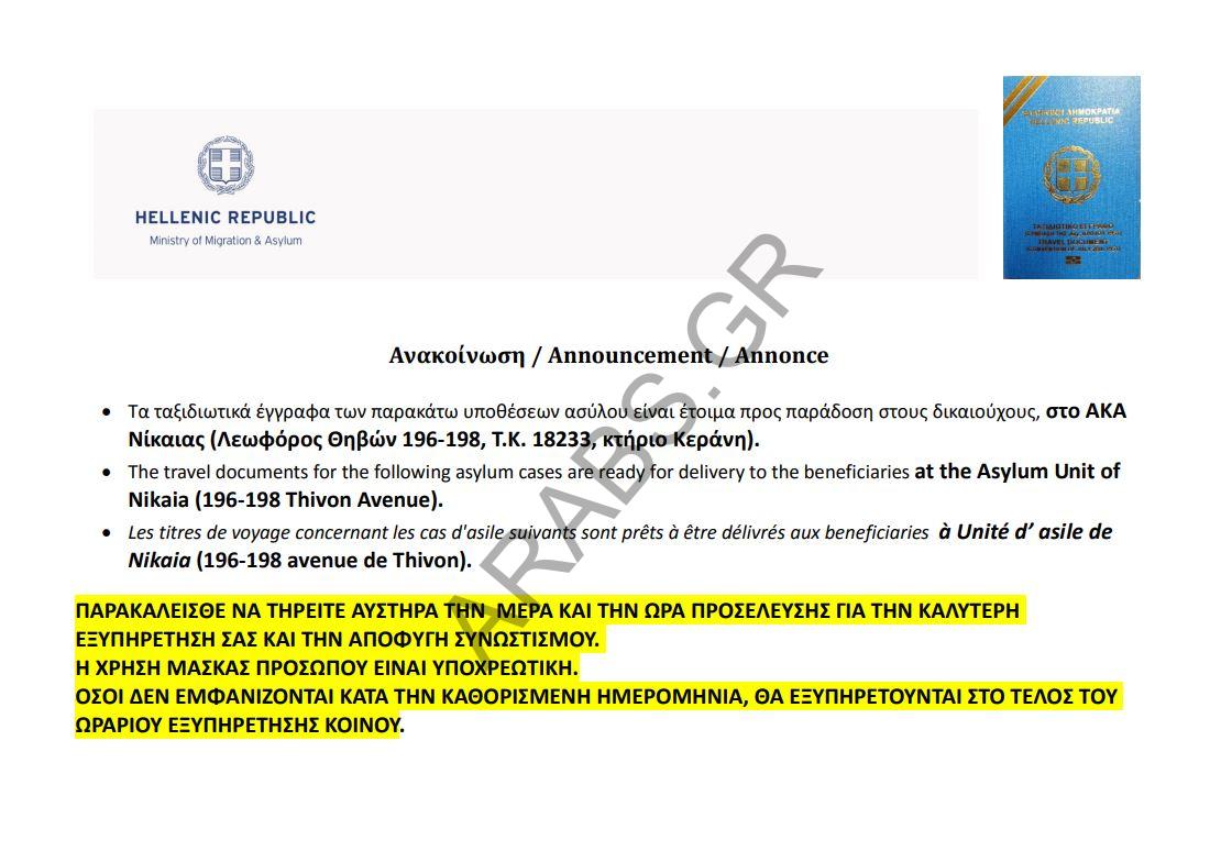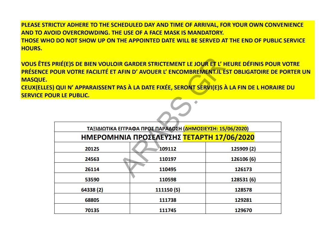 اليونان.. أرقام الباسبورات الجاهزة الخاصة بحالات اللجوء بتاريخ 15/ 06/ 2020.