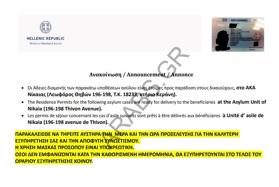 اليونان : تصاريح الإقامة الجاهزة الخاصة بحالات اللجوء بتاريخ 14/ 07/ 2020 ( نيكيا )