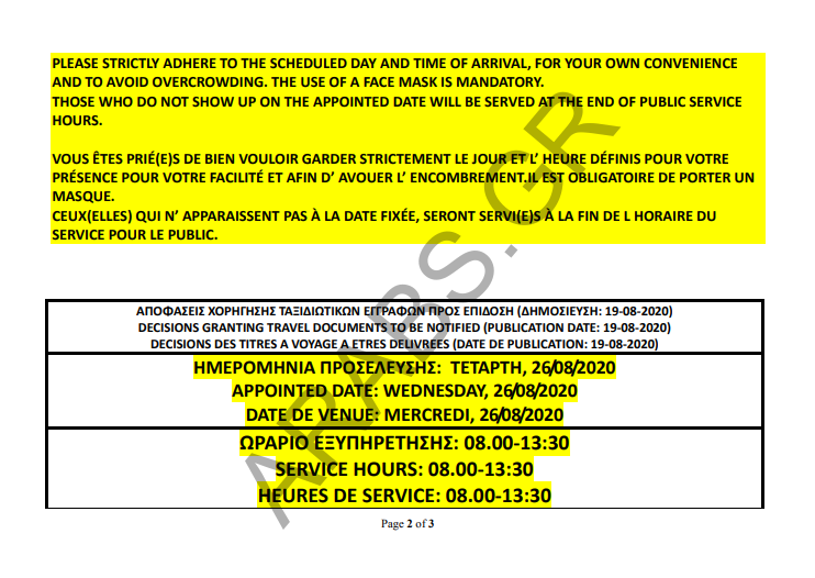 أصدرت دائرة اللجوء اليونانية اليوم الأربعاء 19/8/2020 أرقام الموافقات على الباسبورات الخاصة بحالات اللجوء.